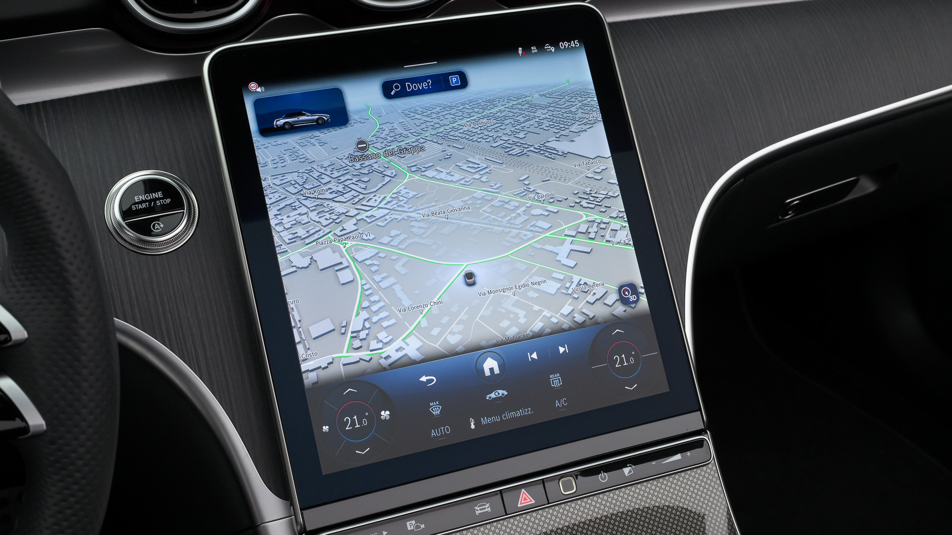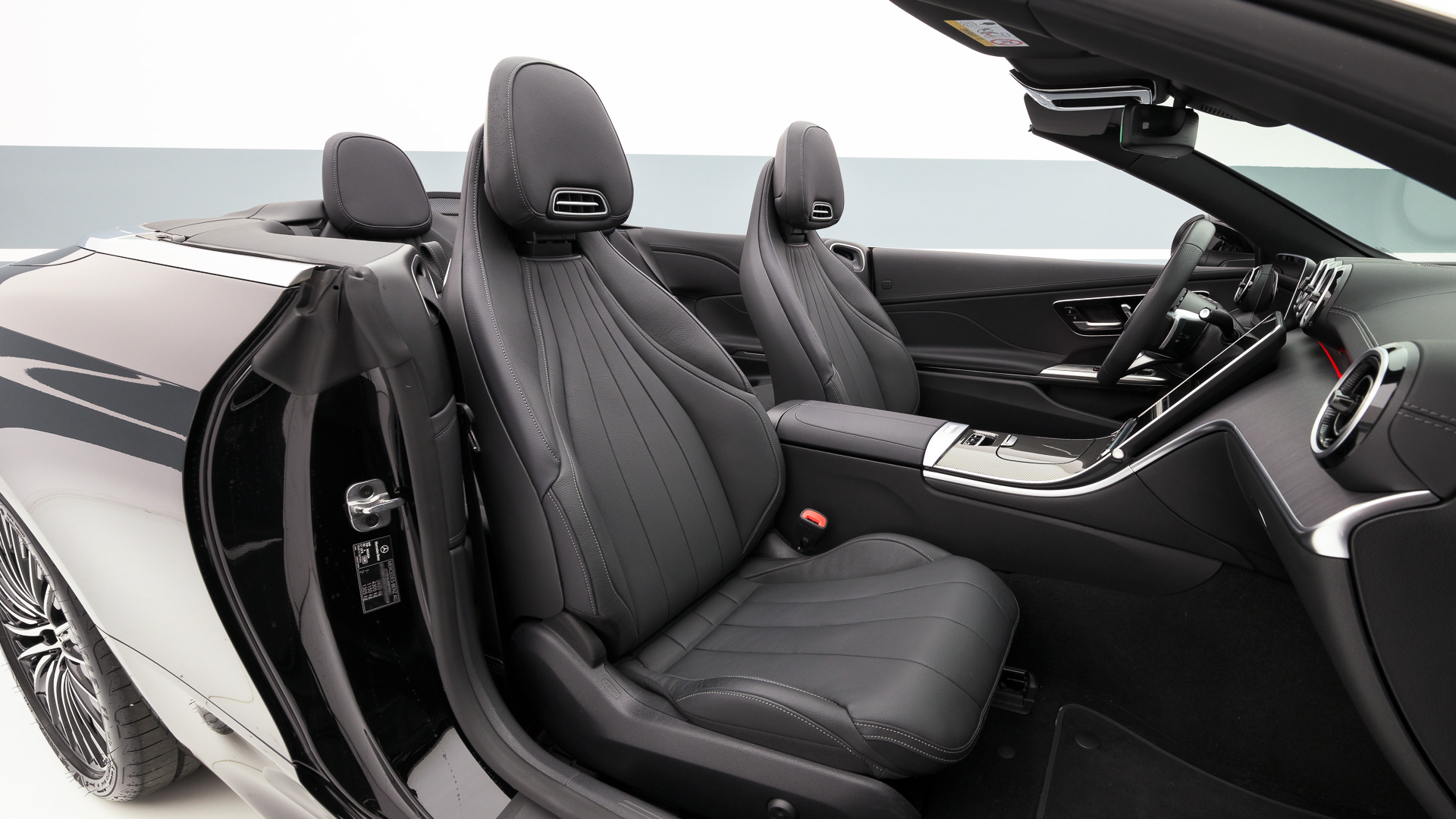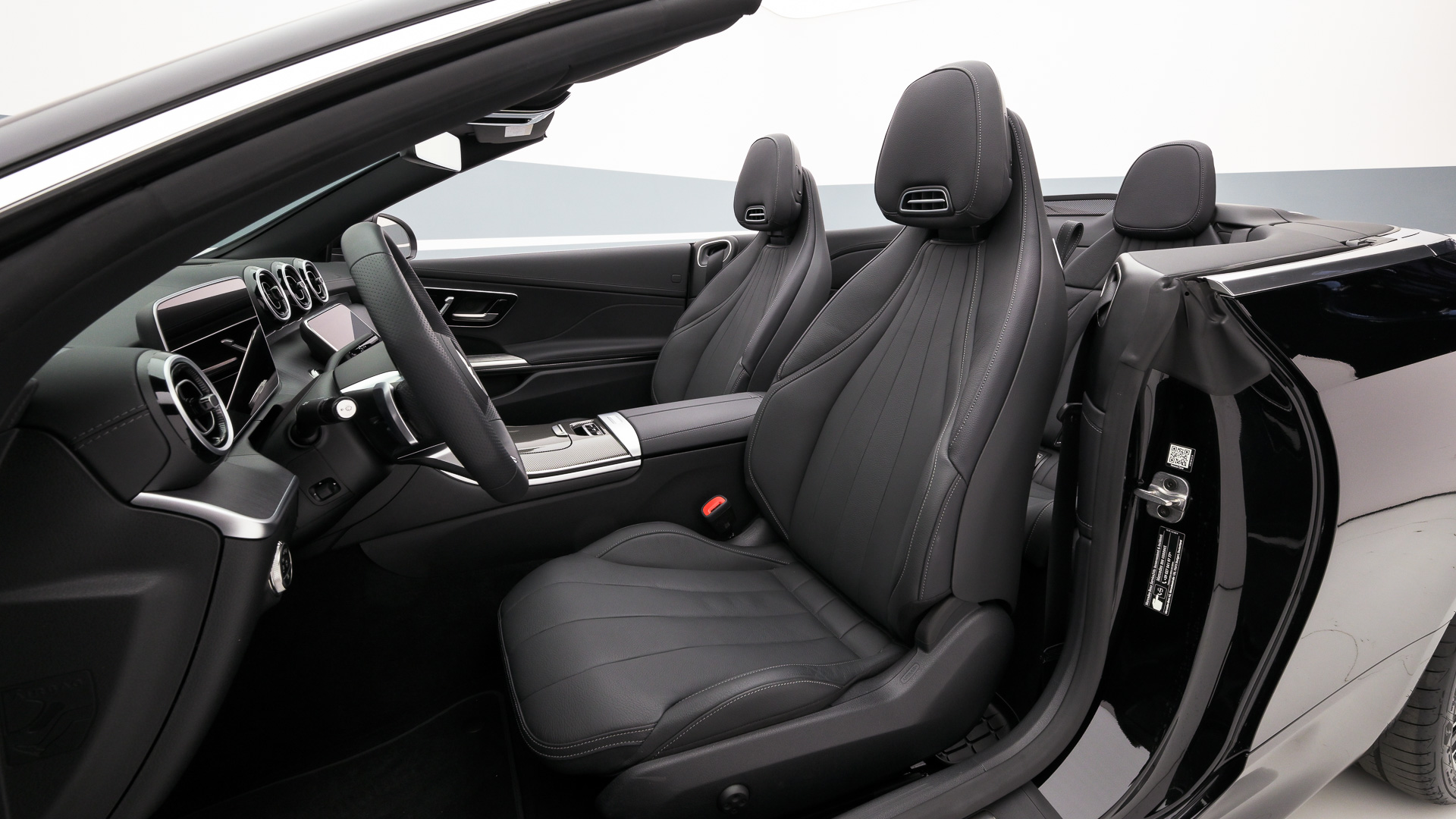 Climatizzatore automatico thermatic, Illuminazione di atmosfera, Sedili anteriori riscaldabili elettricamente, Volante sportivo in pelle Nappa appiattito nella parte inferiore, funzioni estese MBUX, Giubbetto fluorescente per guidatore, Modulo di comunicazione (5G) per l'utilizzo dei servizi Mercedes me connect, Scanner di impronte digitali, Schienali dei sedili posteriori ripiegabili, Keyless start, Keyless-Go, Serbatoio maggiorato da 66 litri, Predisposizione per il car sharing, Tirefit, Consolle centrale nera lucidata a specchio, Plancia portastrumenti e linee di cintura in materiale artico effetto nappa, Soglie d'ingresso anteriori illuminate con scritta "Mercedes-Benz" ("AMG" per i motori AMG), MBUX multimedia system, MBUX Navigation Premium, Display centrale, Driver display, Sistema di ricarica wireless per dispositivi mobili, Cambio automatico a 9 rapporti 9G-Tronic Plus, Alternatore Starter integrato di seconda generazione, Hands-free access, Sistema di assistenza abbaglianti adattivi, Cabriolet comfort package, Pacchetto Advanced Plus, Pacchetto AMG Line Advanced Plus, Pacchetto integrazione per smartphone Apple o Android, Pacchetto Memory, Pacchetto parcheggio con telecamera per la retromarcia assistita, Pacchetto retrovisori, Pacchetto USB, Airbag centrale, PRE-SAFE system, Porgicintura automatico per guidatore e passeggero anteriore, Blind Spot Assist, Sistema di riconoscimento automatico dei segnali stradali, Impianto freni con dischi freni maggiorati all'avantreno, Telecamera posteriore per la retromarcia assistita, Tergicristalli con sensore pioggia, Dynamic Select, Soft Top Nero, Capote insonorizzante in tessuto con maggiore comfort climatico e acustico
